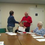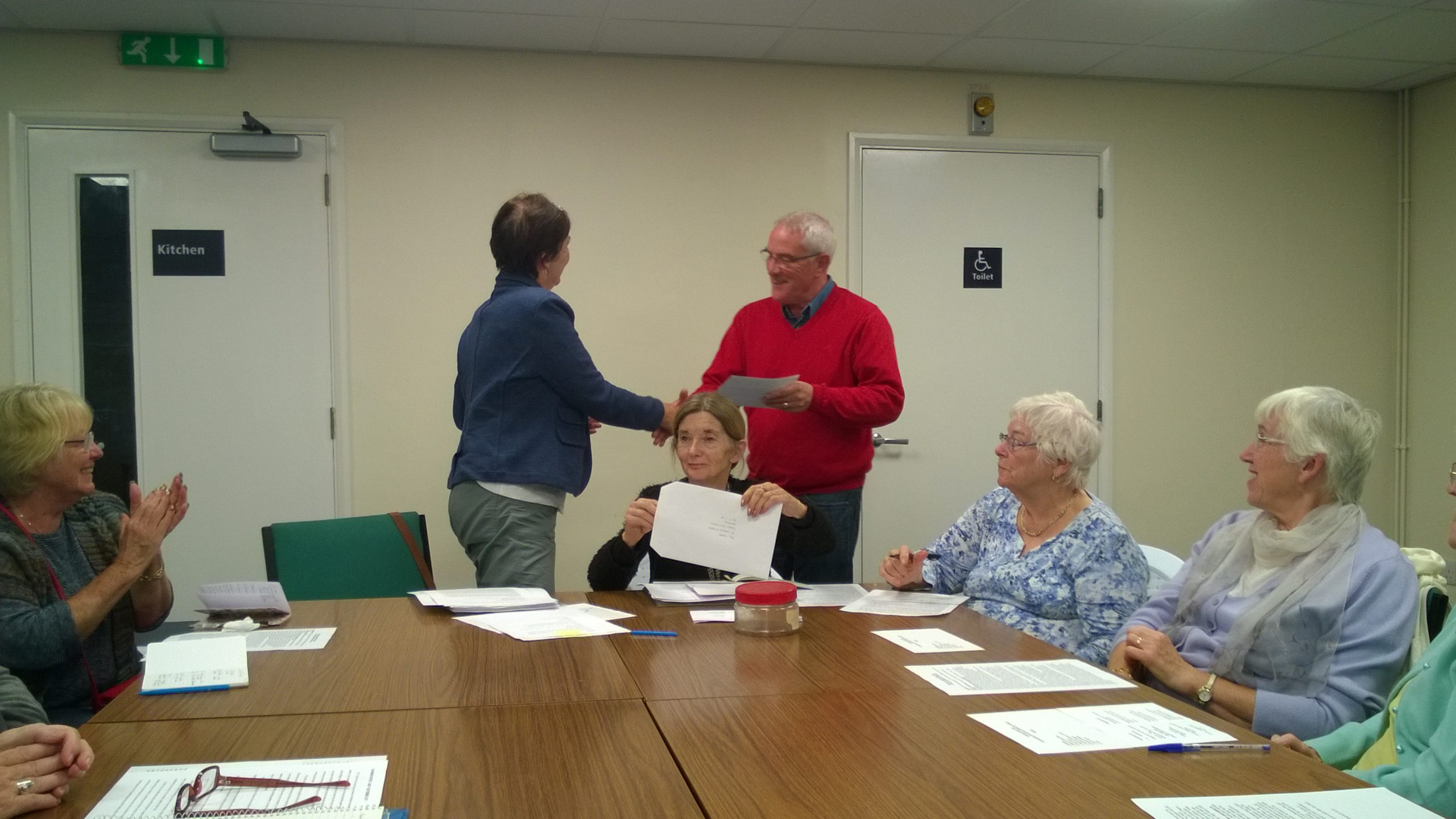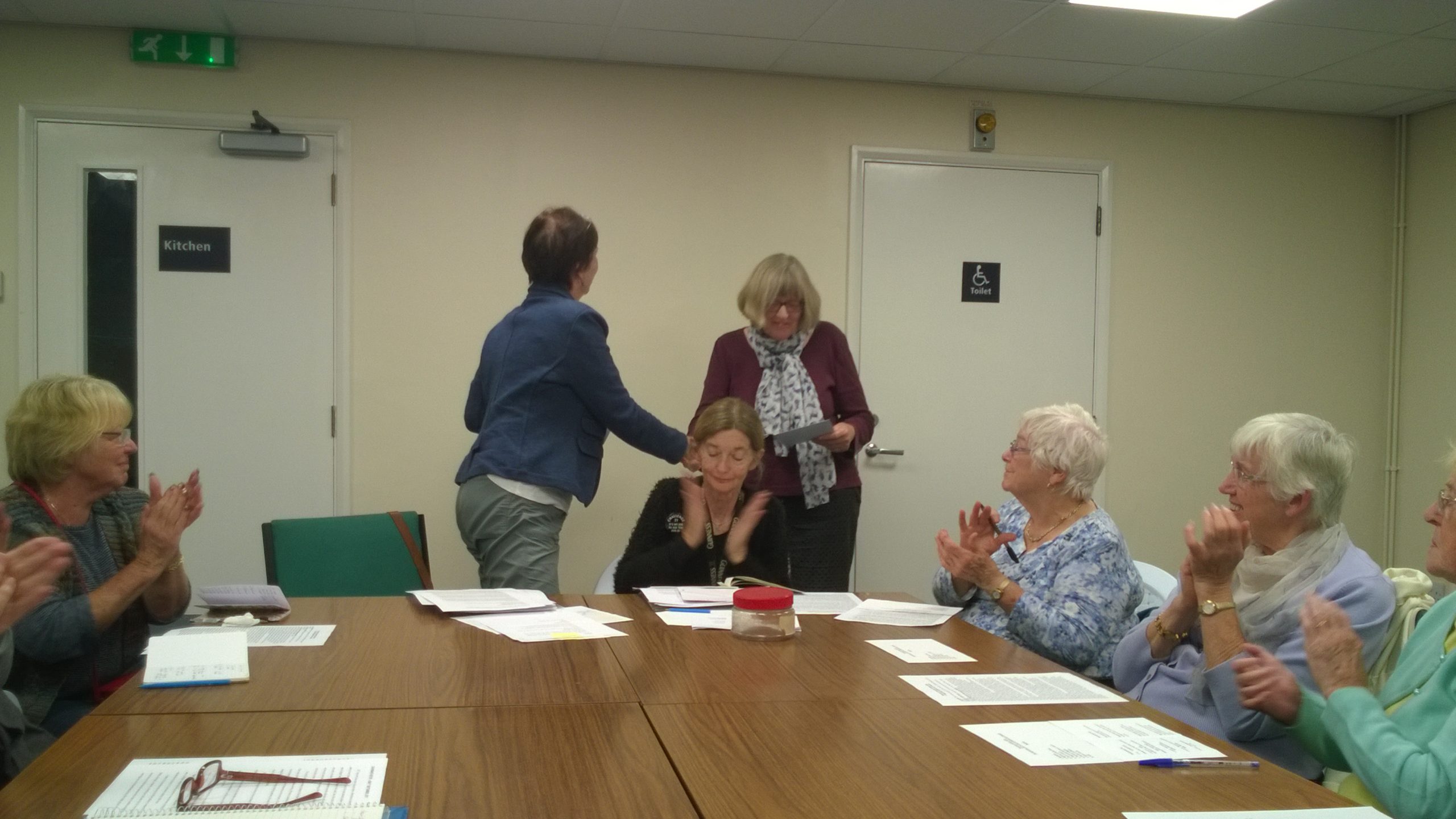 The second part of the evening was given over to the group’s AGM. Both Jackie and Diane stepped down from Chair and Programme Secretary, respectively, after many years serving on the committee together. After the officer reports were concluded a presentation was made, arranged by Brenda on behalf of the other members, to thank Jackie and Diane for all of their tireless work. They will still be members of the group and hopefully be able to devote more time to writing than administration!