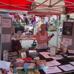 We were selling our new anthology “Gobstoppers, Shrimps and Sour Monkeys” and encouraging would-be writers to come along to our meetings, both of which went rather splendidly. We sold 25 copies of the book and have several names and emails of local writers (and writers-to-be) who we hope to see over the next weeks and months. Who knows, perhaps next year we’ll have a new anthology for sale with content from new members.