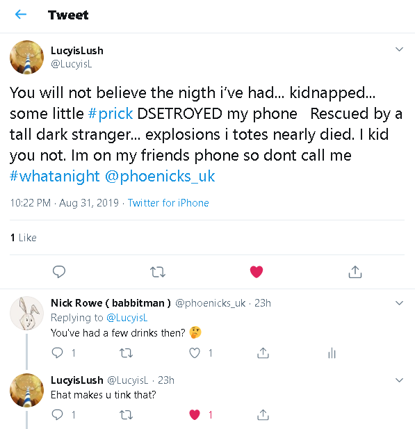 Clair and I also took to Twitter to re-enact some of the final scenes from the book. If you haven’t read it yet, it starts with some news headlines from 1992 and ends with social media messages that reflect some of the evening’s events. Clair had created a Twitter account for one of her characters so that the tweets at the end of the book showed up on a real Twitter timeline – that’s how dedicated we are!